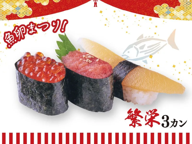 家族の健康と幸せを願う「繁栄」は、いくら軍艦、明太子軍艦、数の子という魚卵系の組み合わせです。プチプチ、とろり、コリコリと、食感のバリエーションが楽しめるのが魅力ですね。家族みんなで楽しめる、まさに「繁栄」の名の通り賑やかなメニューで、この種類の軍艦が一度に味わえるのは、600円(税込660円)というお得感があります。