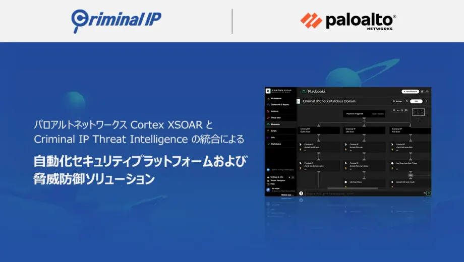 AIベース脅威インテリジェンス「Criminal IP」と、世界最大級のサイバーセキュリティ企業パロアルトネットワークスの「Cortex XSOAR」が連携しました。この画期的な統合により、AIを活用したセキュリティ運用の自動化が実現し、高度化するサイバー攻撃に対する企業の防御体制が飛躍的に強化されることが期待されます。本記事では、この連携がもたらす革新的な変化と、その具体的なメリットについて詳しく解説します。