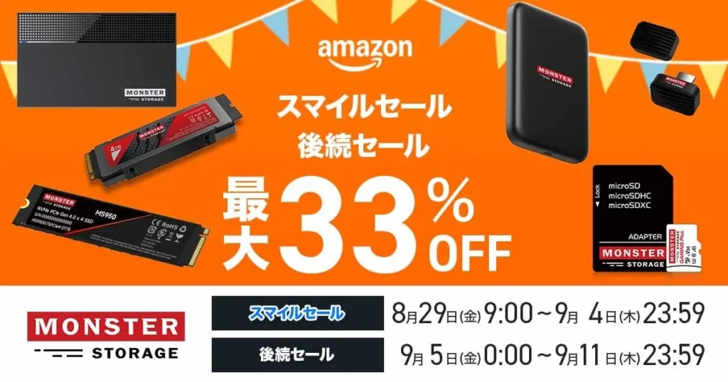 ビジネス効率を最大化するチャンス:AmazonスマイルSALEでMonster Storage製品が最大33%OFF
