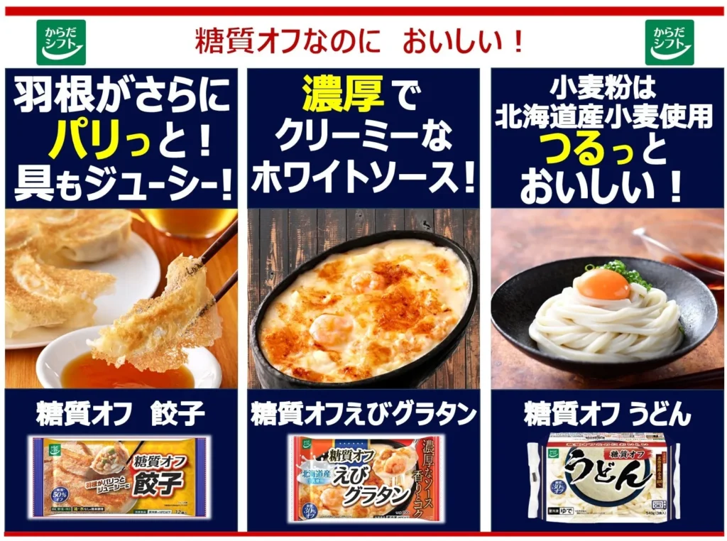 多忙な日々を送るビジネスマンにとって、健康的な食生活の維持は大きな課題です。「糖質オフだから味は二の次」そんな常識を覆すのが、三菱食品「からだシフト」冷凍食品のリニューアルシリーズ。羽根がパリッとした餃子、濃厚なえびグラタン、本格うどんが、美味しさはそのままに糖質オフで楽しめます。もう食事を我慢する必要はありません。