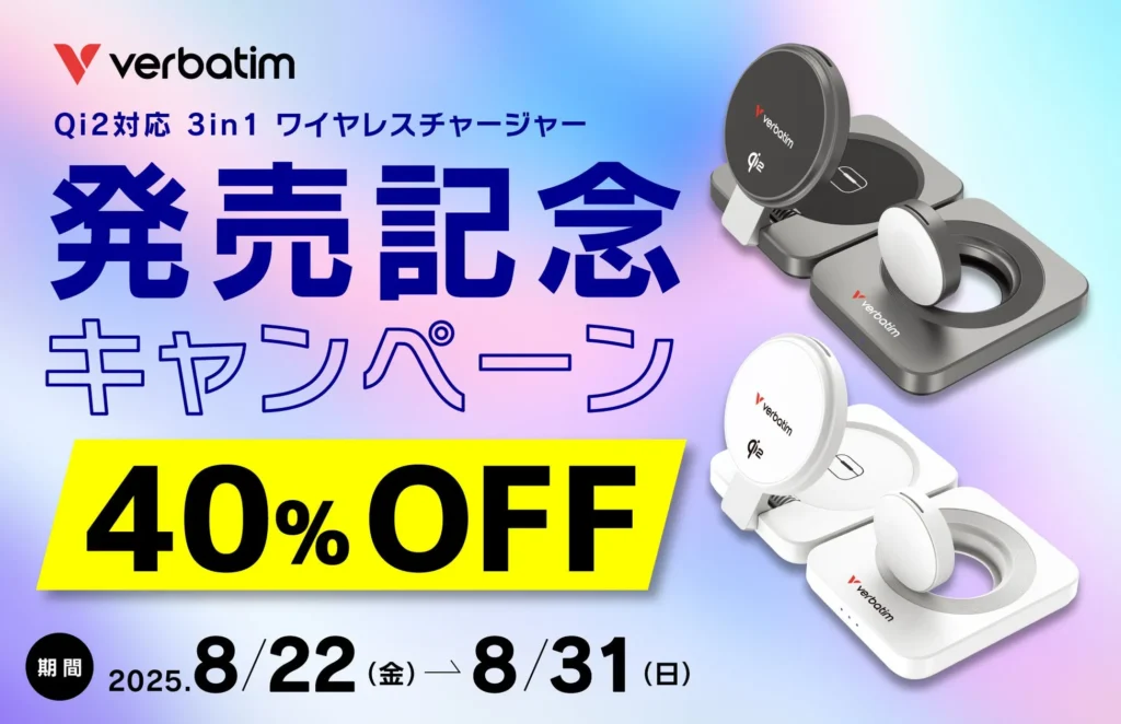 Verbatim(バーベイタム)からQi2対応3in1ワイヤレスチャージャーが登場した。この製品は、スマートフォン、イヤホン、スマートウォッチの3台同時充電に対応し、デスク周りのケーブル問題を解消する。MagSafe互換による確実な高速充電、折りたたみ設計による高い携帯性、角度調整機能がビジネスシーンでの利便性を高める。現在、期間限定で40%OFFの特別価格で提供されており、アイ・オー・データ機器が日本総代理店を務める信頼性も魅力である。